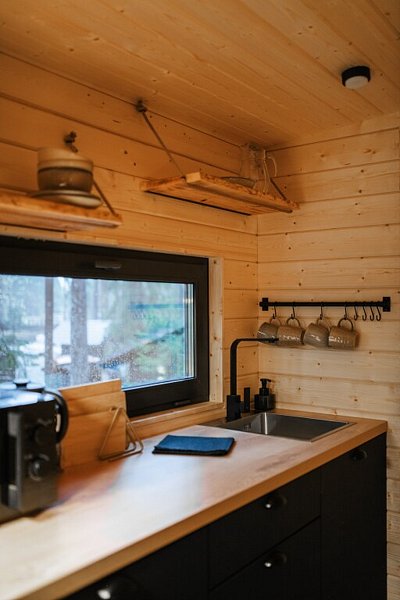 В доме две комнаты. Одна из комнат с двуспальной кроватью, что позволяет создать комфортные условия для непрерывного и спокойного сна. Вторая комната объединена с кухонной зоной, что создает атмосферу для приготовления пищи и общего времяпрепровождения с семьей.