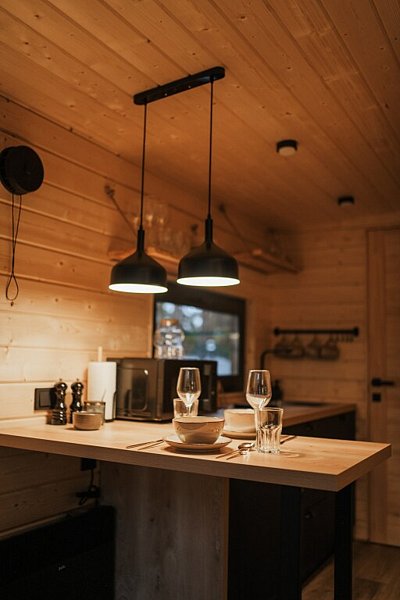 На 1 этаже диван-кровать , на 2 этаже двуспальная кровать. Кухня оборудована всей необходимой техникой. Холл просторный для дома формата А-FRАМЕ, удобный диван, который превращается в спальное место, телевизор smаrt tv (есть wi-fi). Дом оборудован террасой с выходом в зону барбекю. На территории есть мангал и все необходимое для него.