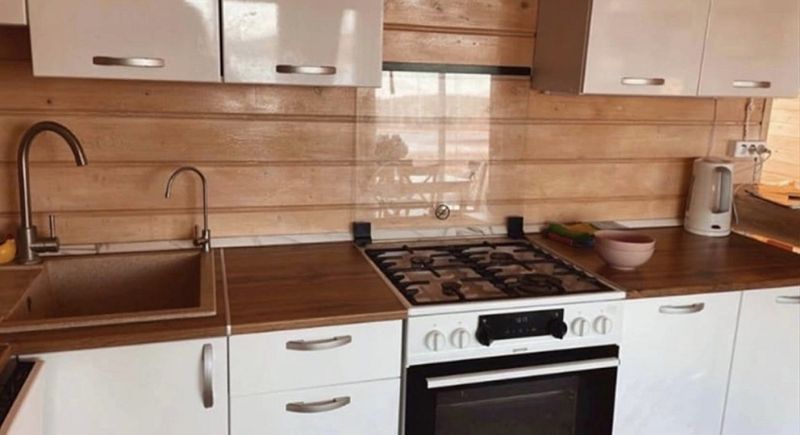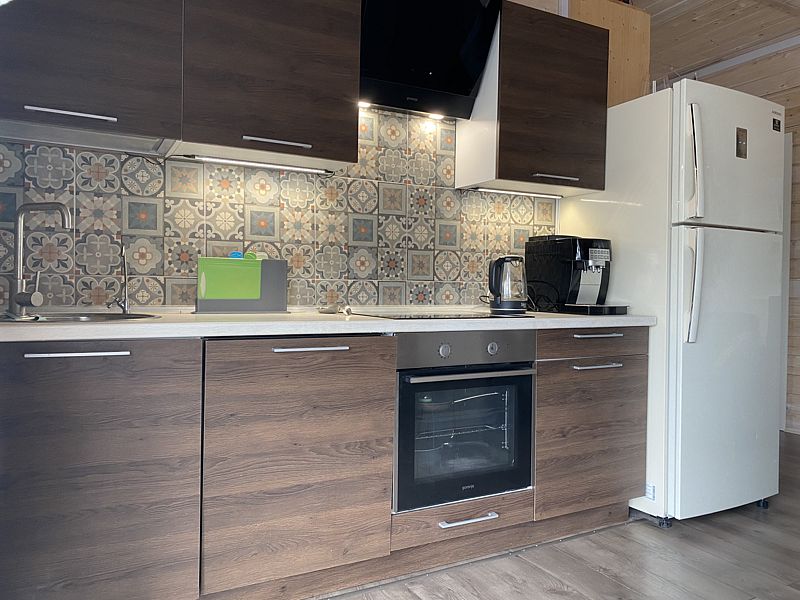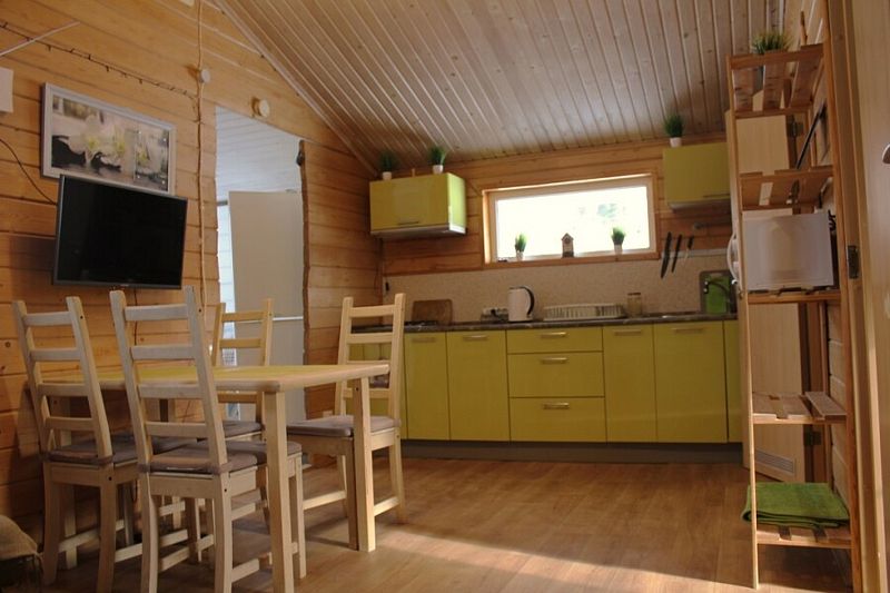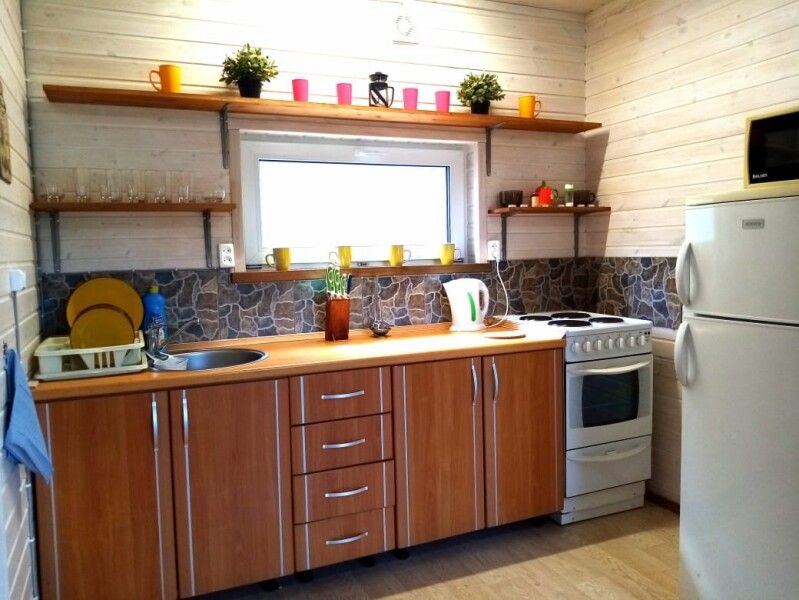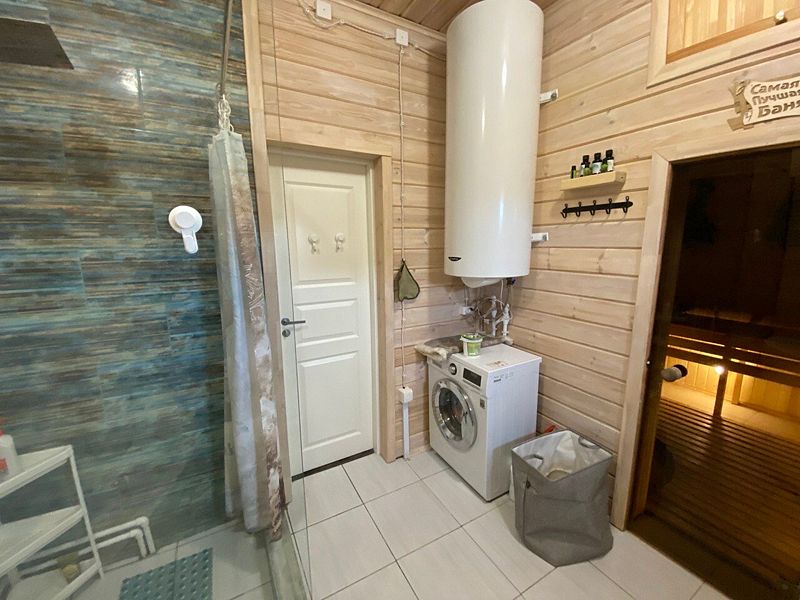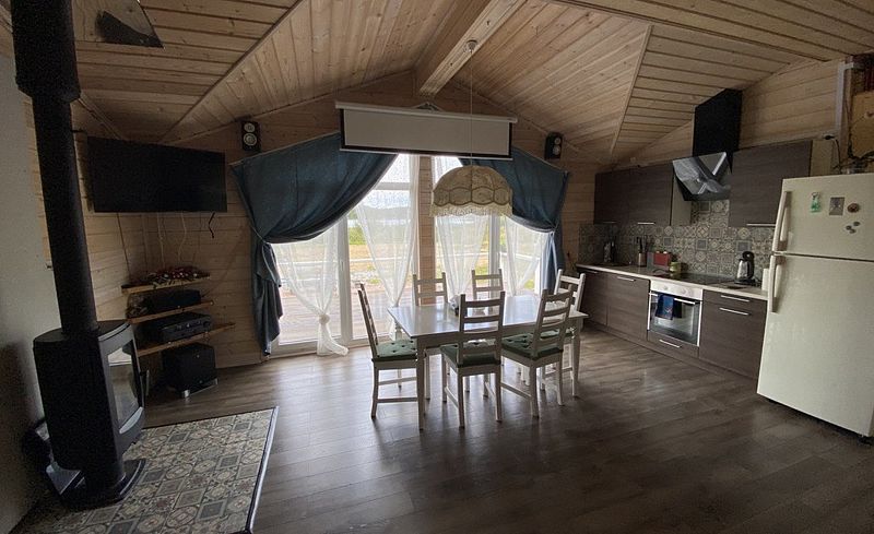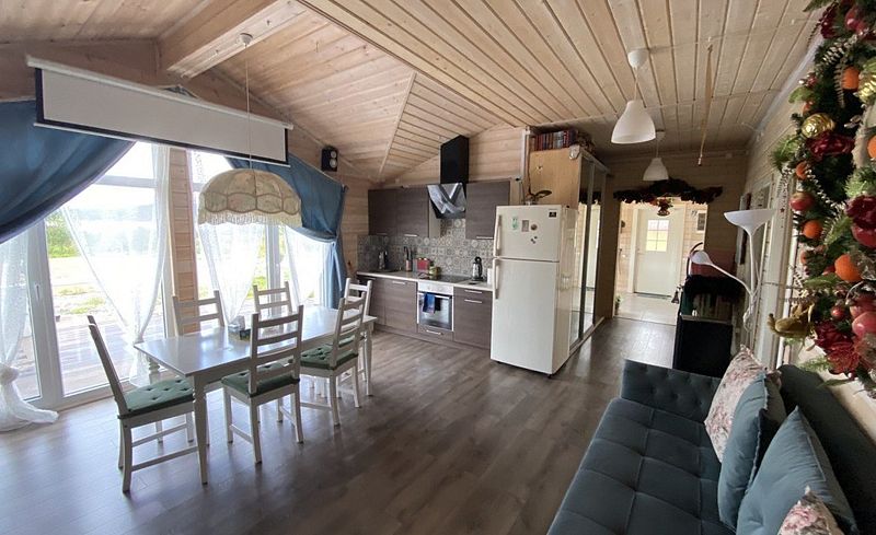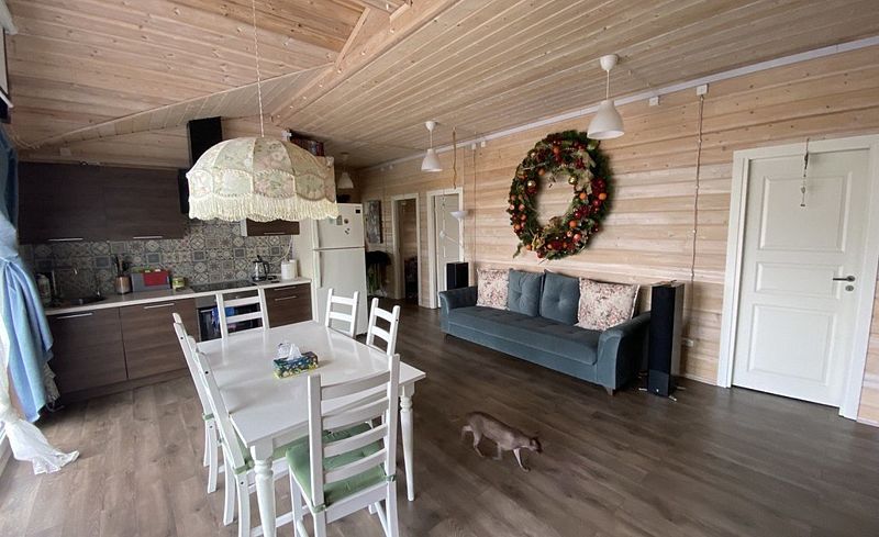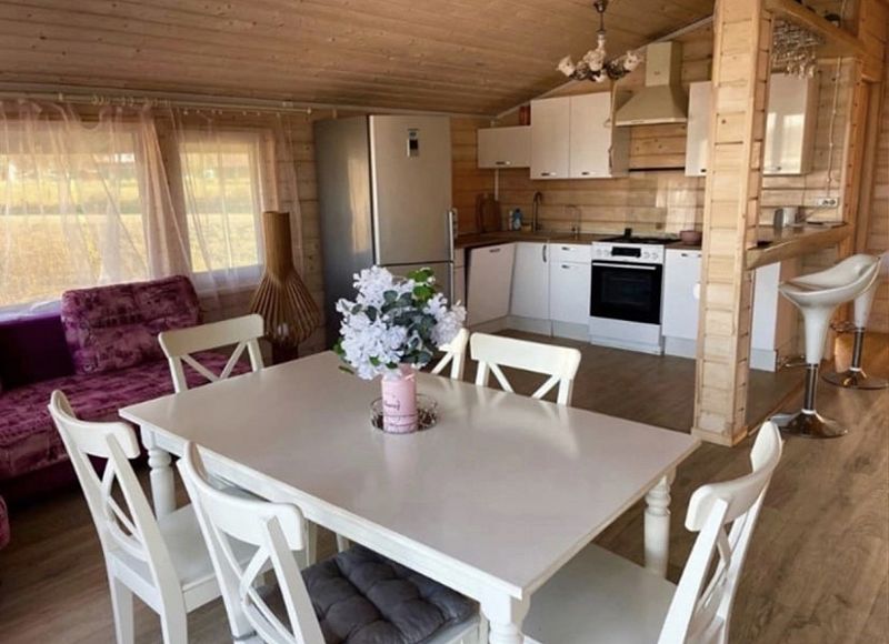 Дом оснащен 2-мя туалетами, с камином и русской баней, с белоснежной кухней, с теплыми полами. Также в доме есть вся необходимая посуда, стиральная и посудомоечная машины, интернет + ТВ, чистая питьевая вода, постельное белье и полотенца. В доме с комфортом размещаются 8 человек.