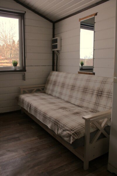 - две отдельные спальни с двуспальными кроватями + доп. место на первом этаже;
