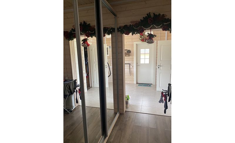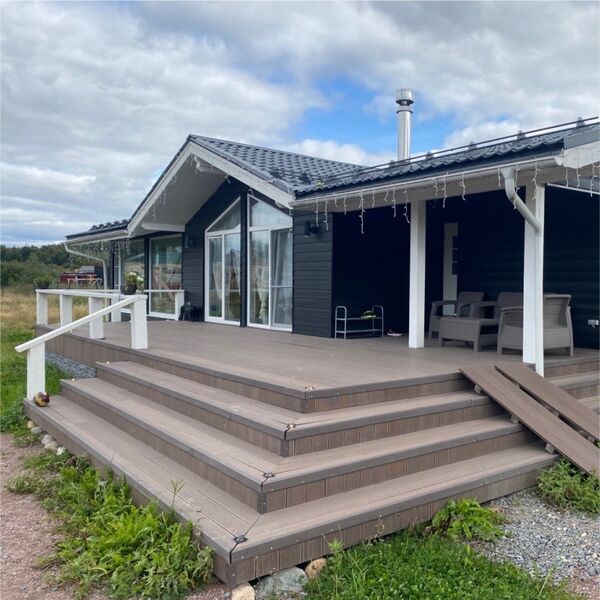 В доме 3 отдельные комнаты (спальня с двуспальной кроватью и детская с 3 спальными местами). Большая веранда с панорамными окнами и видом на ладожские шхеры на строну заката (с раскладным диваном для двоих). Открытая терраса с садовой мебелью. В гостиной удобный раскладывающийся диван. В доме есть все для комфортного проживания: душ, ванная, 2 санузла, оборудованная кухня (холодильник, электрическая плита, посудомоечная машина, посуда, духовой шкаф, чайник), чистое постельное белье и полотенца.
