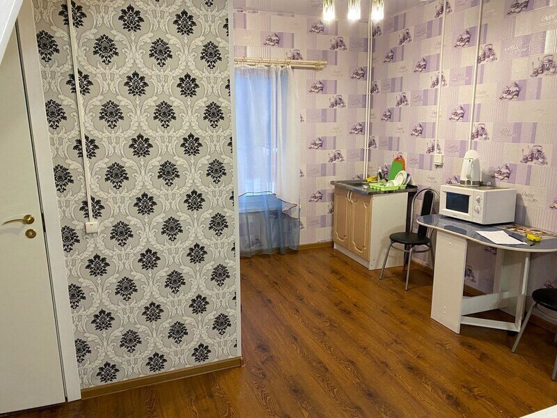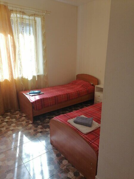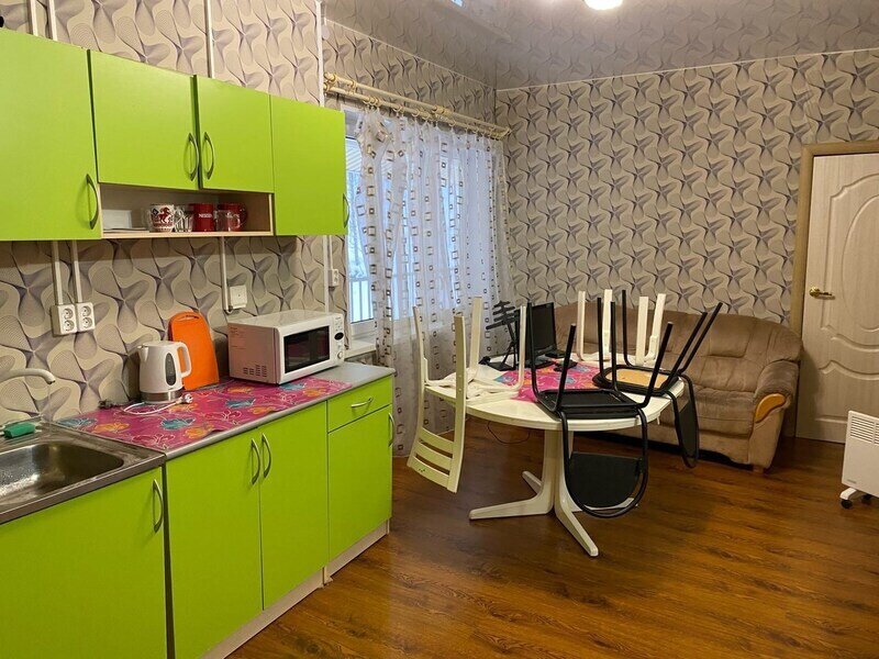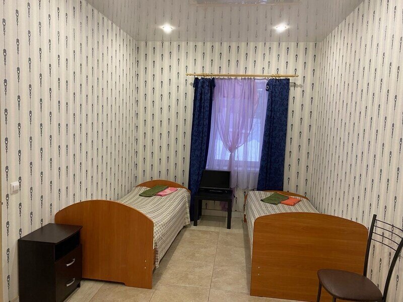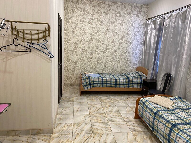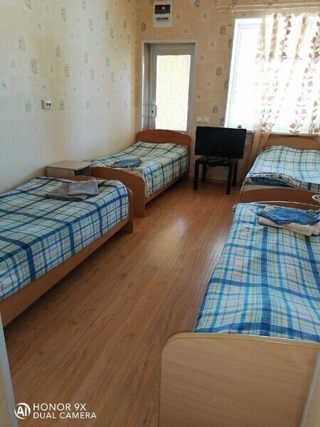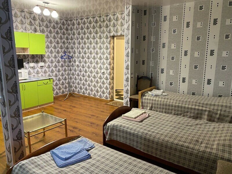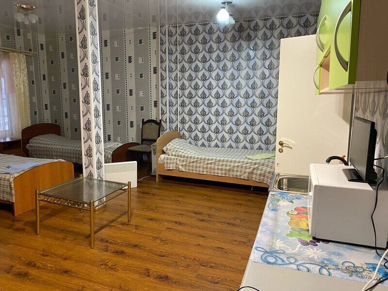 Стандартный четырехместный номер. Номер с четырьмя односпальными кроватями. Первый этаж, отдельный вход со двора. В номере душевая кабина и туалет, небольшая мини-кухня