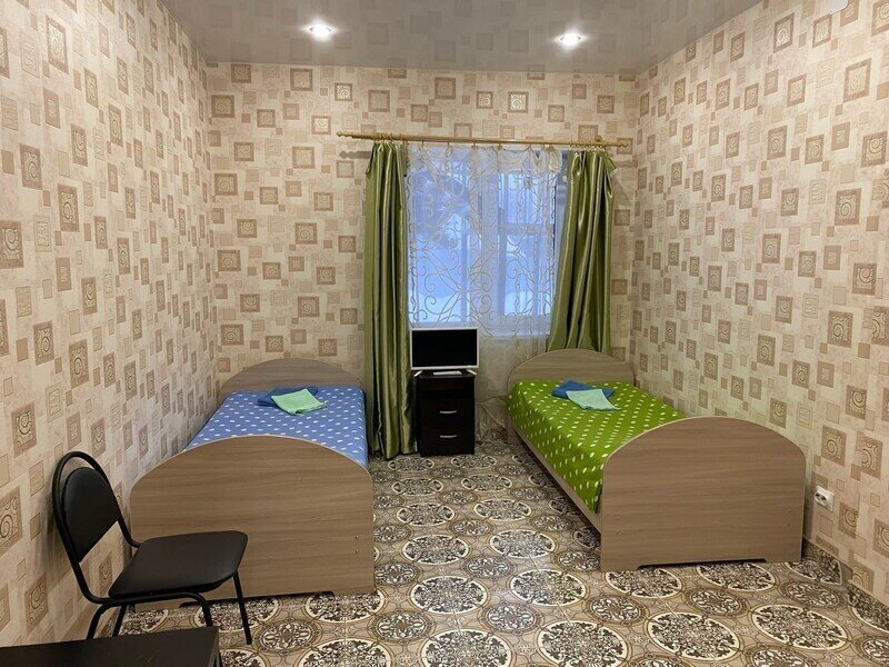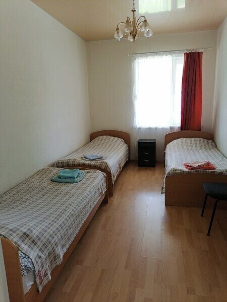 Стандартные трёхместные номера с раздельными кроватями. Душ и туалет в номере присутствует. На этаже кухня общего пользования, оснащенная всем необходимым.