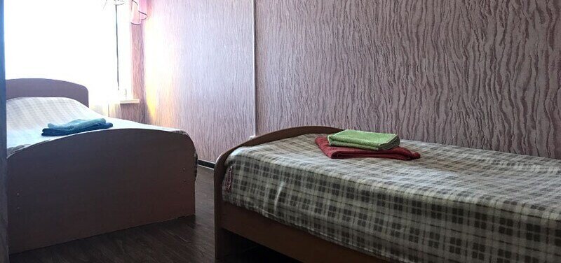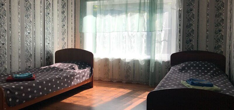 Четырехместный номер с раздельными кроватями и общими удобствами на этаже.