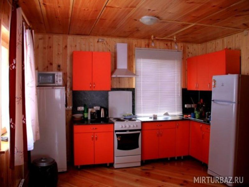 - большая кухня-столовая, оснащенная всем необходимым (диван, стол для большой компании, холодильник, электрическая плита, микроволновая печь, чайник, посуда)