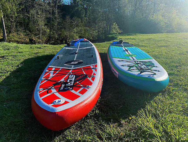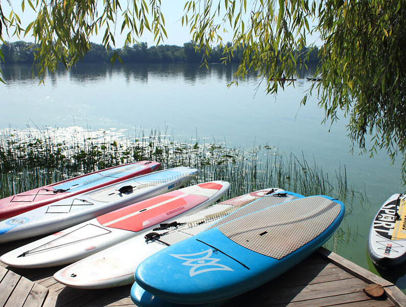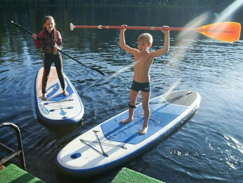 Надежные SUP доски GLADIATOR. Подходит для детей и взрослых. Рядом – теплое и спокойное озеро без большой волны.