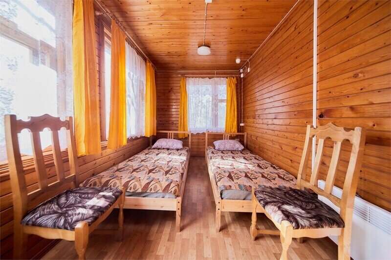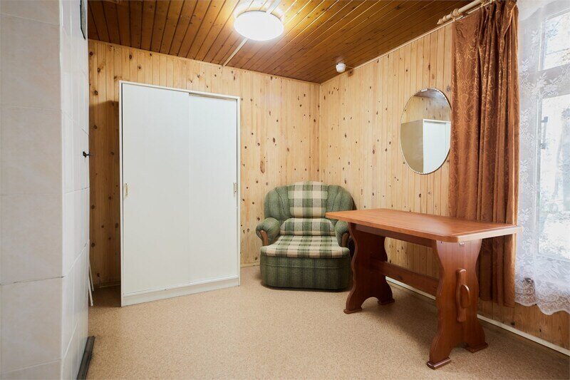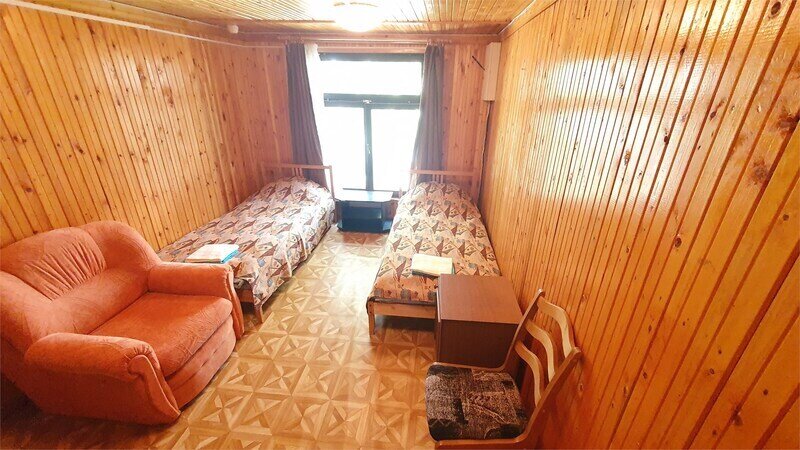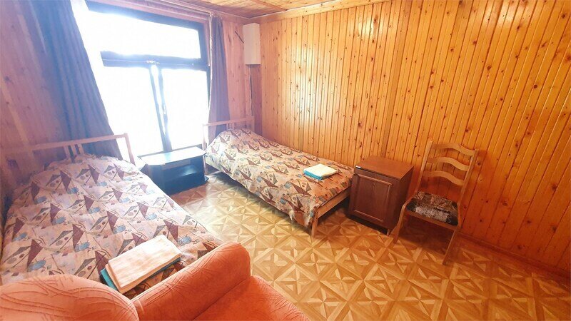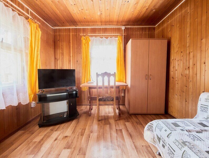 Простой трехместный номер без удобств. Всего в доме 3 номера и общая кухня. Санузел на улице - белый домик на фото, отдельный вход М и Ж, по две кабинки. Подойдет для тех, кто большую часть отдыха проводит на природе. В стоимость включено проживание, постельное белье, парковка и пользование всей территорией базы отдыха.