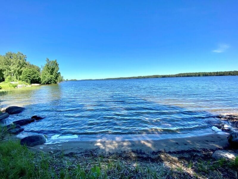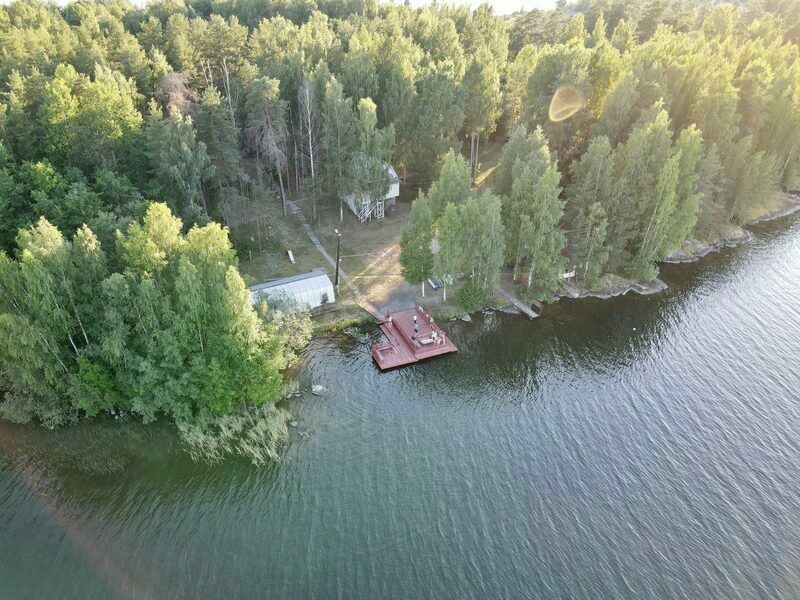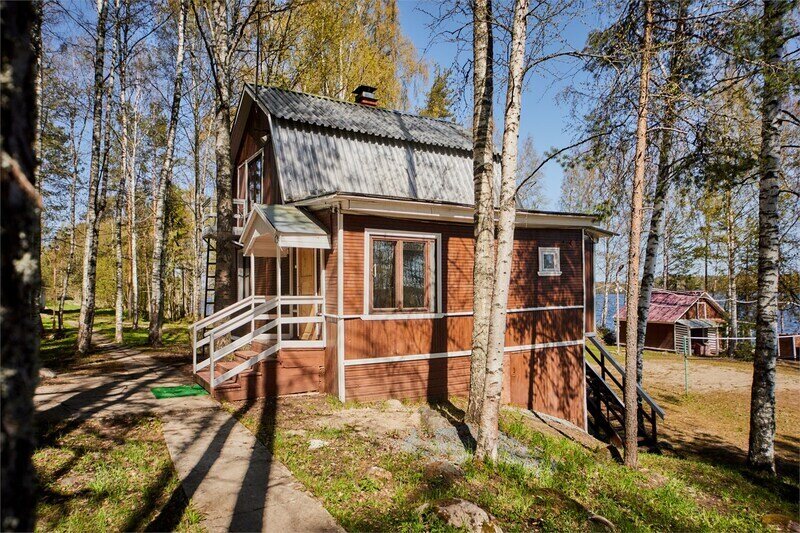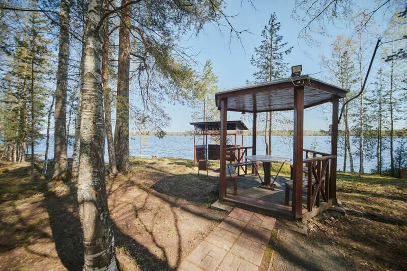 Уютный коттедж с камином на дровах и видом на озеро из спальни второго этажа. Рядом персональная беседка для отдыха на природе и баня на берегу озера.