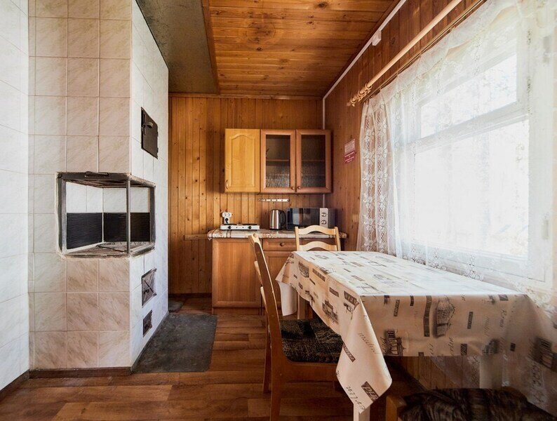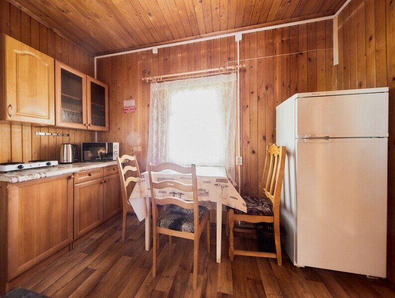 Уютный домик для 4-5 человек рядом с озером. В доме санузел, душ, всегда горячая вода. На кухне холодильник, микроволновка, плита, чайник, набор посуды. Светлая спальня с двуспальной кроватью. Мангал и шампура предоставляются бесплатно.