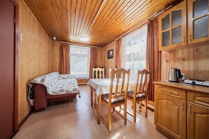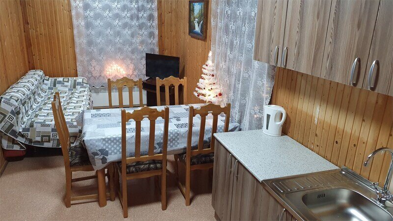 Компактный домик для четырех гостей, отлично подойдет для семьи с детьми. В доме полноценный двуспальный диван и двухъярусная кровать. Кухня оборудована всем необходимым. Душ, санузел, горячая вода, телевизор, бесплатный WiFi.