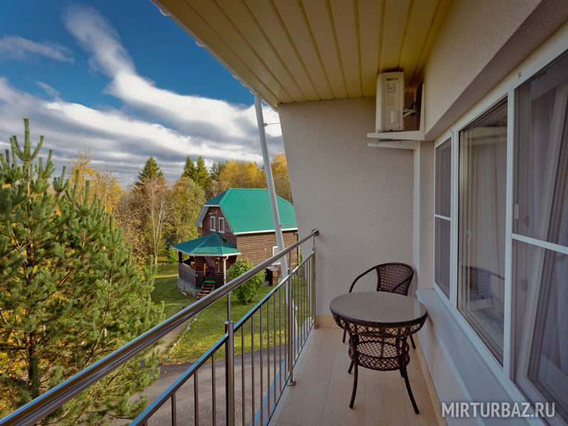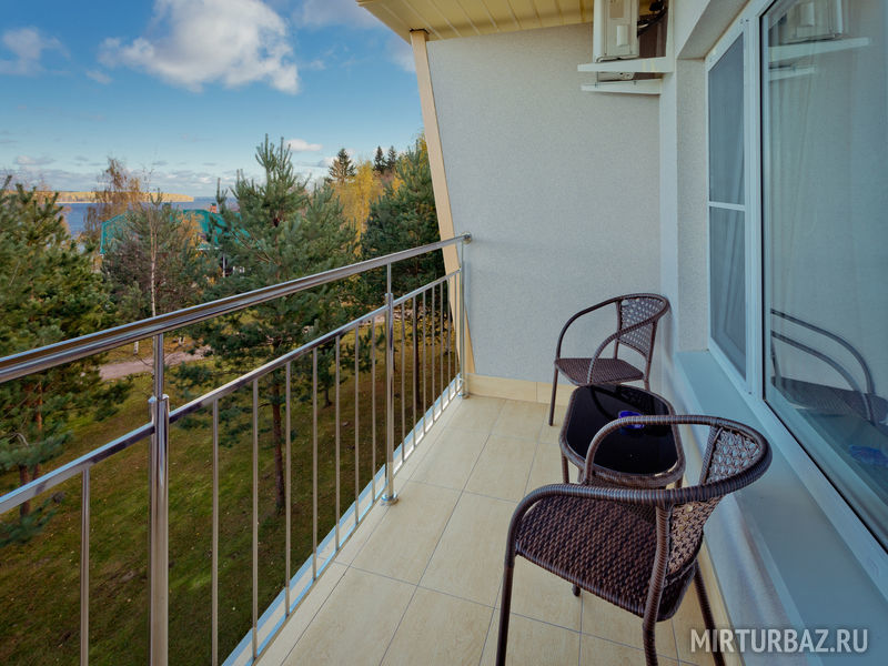 Большой балкон с видом на парк/озеро или лес. Номера расположены на 2 этаже.