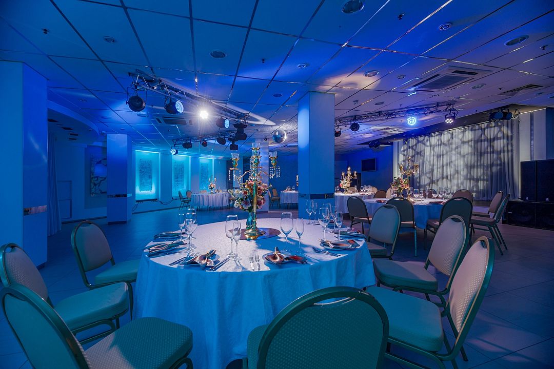 Элегантный зал Гелиос круглой формы с хрустальной люстрой под куполом позволяет выбрать различные виды рассадки: Круглый стол, Театр, Класс, Коктейль, Фуршет. Зал оснащён экраном, проектором, звуковым оборудованием и беспроводным интернетом.