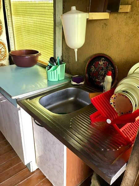 Это летний дачный дом эконом-класса с частичными удобствами. В доме есть душ, горячая и холодная вода, туалет на улице, необходимые кухонные принадлежности, холодильник, электроплита и чайник, питьевая вода в роднике в пешей доступности от дома. Предоставляются постельное бельё и полотенца. В доме работает сотовая связь и Wi-Fi.