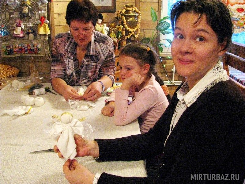 Стоимость: 2000 рублей до 10 чел, 3000 рублей до 20 чел, 4000 рублей до 30 чел.      Мастер-класс по кукламОписаниеБаза предлагает сделать карельскую куклу-оберег своими руками. Вам представится уникальная возможность научиться мастерить эти замечательные сувениры и забрать их с собой, чтобы они хранили тепло и покой вашего дома.