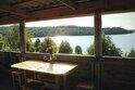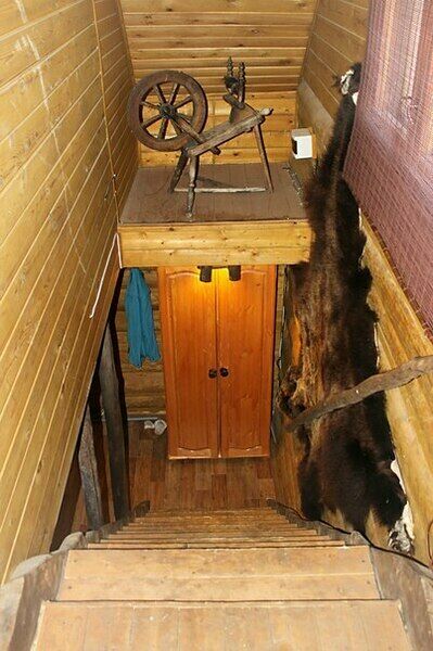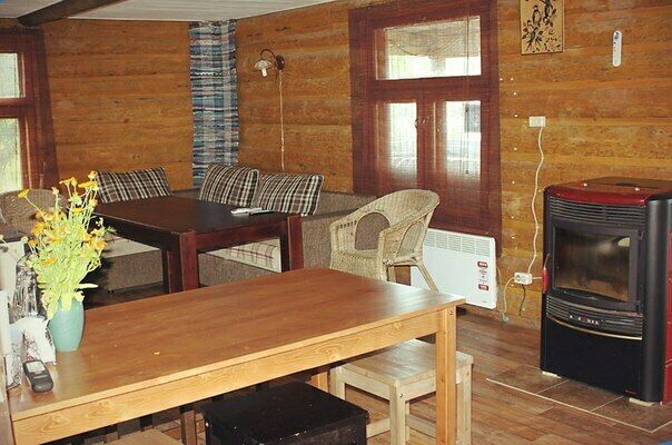 1-й этаж: гостиная с обеденным столом, совмещенная с полностью оборудованной кухней (газовая плита, посуда, чайник), раздвижной угловой диван, холодильник, спутниковое ТВ, отдельная спальня с двумя односпальными кроватями. Просторная веранда с видом на озеро, прихожая, санузел с душевой кабиной, бойлер.