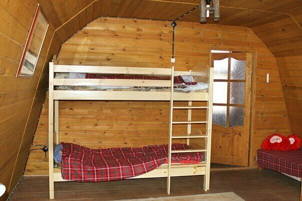 Один домик вместимостью 4 человека: две двухярусные кровати, стол, стулья, кухонный уголок (СВЧ, эл.плитка, умывальник, эл.чайник, посуда), ТВ, зеркало, сушилка для обуви. Туалет на улице.