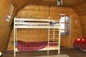 2-й этаж: спальня с одной широкой кроватью и одной двухярусной кроватью.