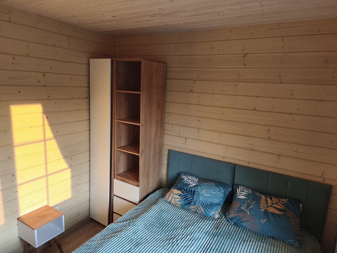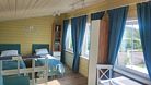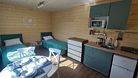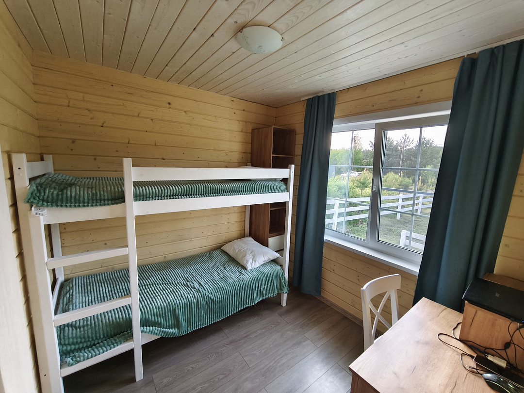 Все комнаты оборудованы (холодильник, электроплита, микроволновая печь, чайник, набор столовой посуды, стол обеденный, стулья, комод/шкаф), в каждой комнате две односпальные кровати (либо двуспальная кровать), кухня. Рассчитан на проживание 6-8 человек.
