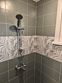 Ванная комната (душ, унитаз, раковина, полотенцесушитель, фен).