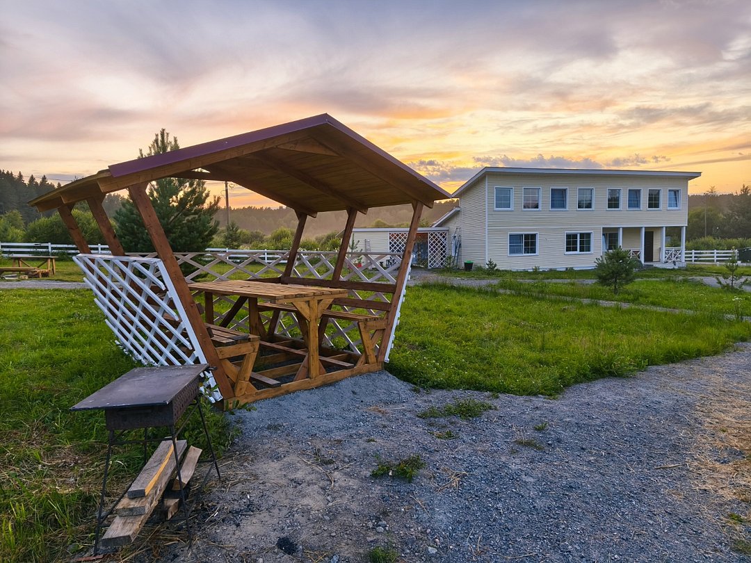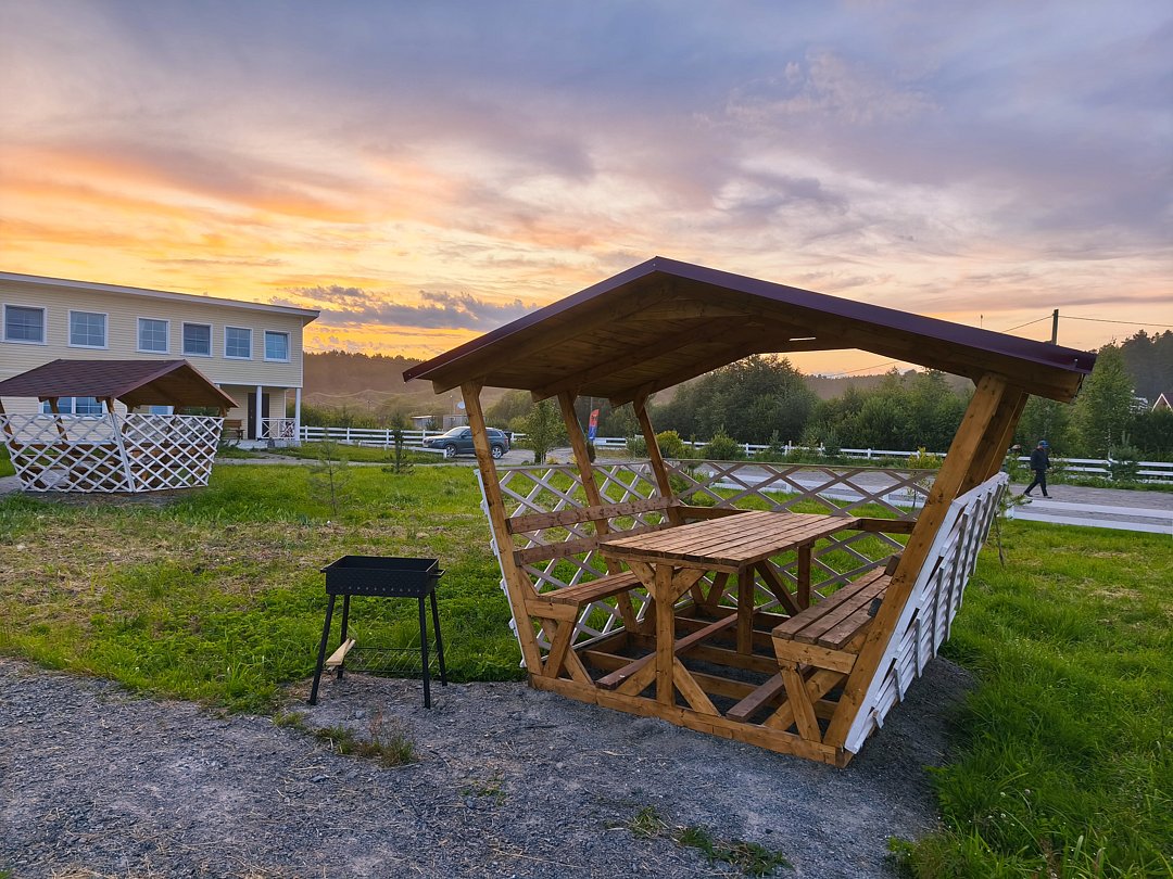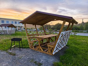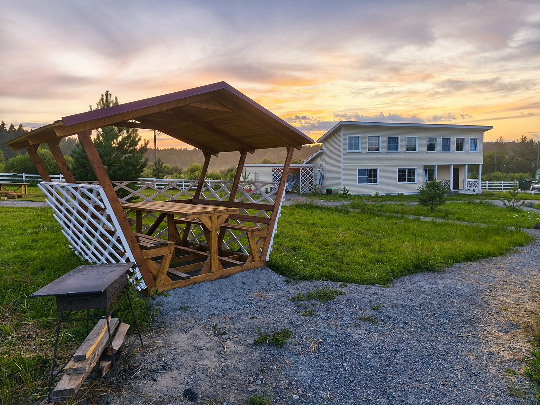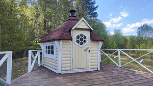 Читать полностьюК услугам гостей возможность удобно разместиться для приготовления шашлыка или плова в гриль-домике с открытой террасой. На террасе дополнительно установлен стол и две лавки, чтобы можно было посидеть в хорошую погоду на открытом воздухе. Гриль-домик установлен в верхней точке участка, поэтому с террасы открывается красивый вид на территорию и ладожские шхеры.