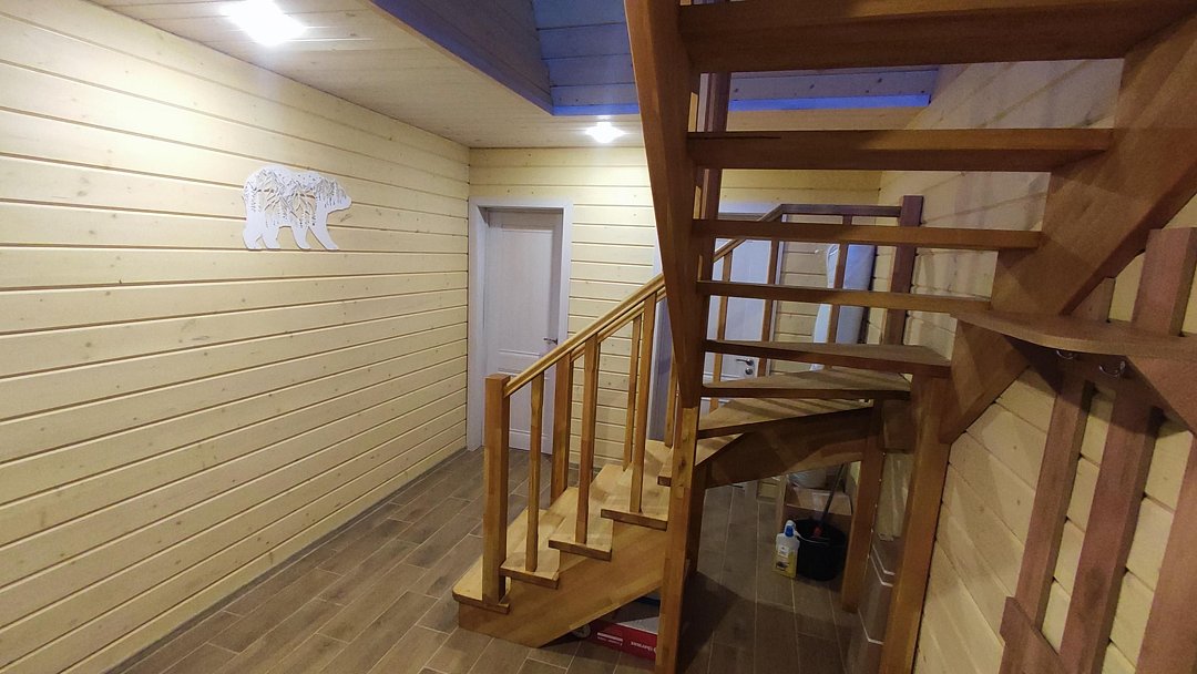 Холл, два санузла на первом этаже (душевая, унитаз, раковина, фен), три комнаты площадью 14 м.кв., 16 м.кв. и 20 м.кв.
