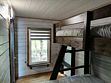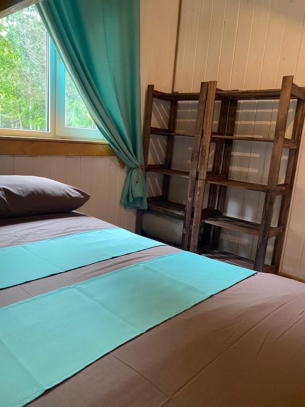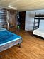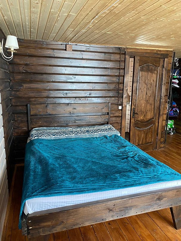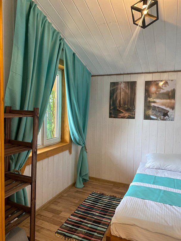 Поднимаясь на второй этаж, вы попадаете в просторную комнату, где царит атмосфера уюта и расслабления. Здесь стоит большая двуспальная кровать, а рядом — двухъярусная кровать, идеально подходящая для семьи с детьми или гостей. Из окон открывается потрясающий вид на воду, который завораживает в любое время суток — будь то утренний туман, дневное солнце или вечерние оттенки заката.