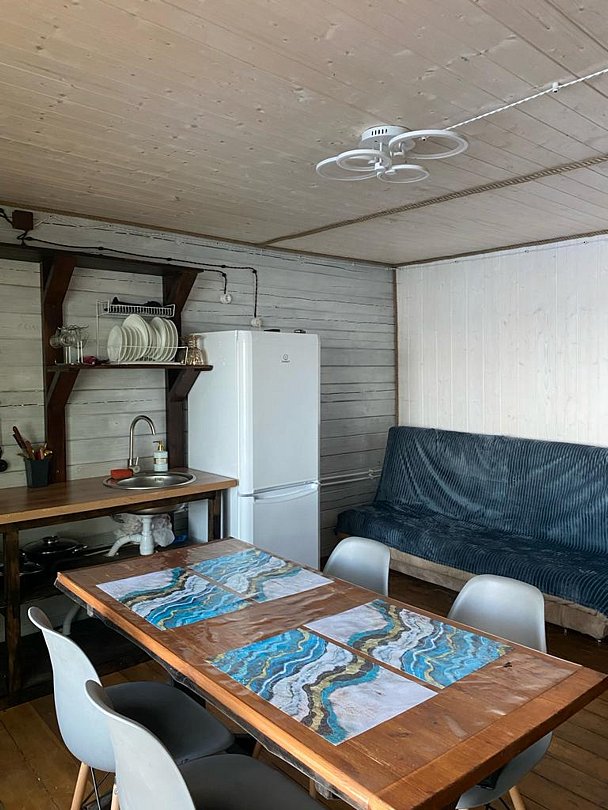 Комфортный гостевой дом на берегу озера в березовой чаще.Мобильной связи нет. Вода озерная. Дорога грунтовая, хорошая. Чистят круглосуточно. Чан не входит в стоимость проживания. Есть мангал, каптильня. С собой обязательно взять угли, решетку, розжиг, щепу. Для камина дрова предоставляются бесплатно. Магазин ближайший на 8-м шлюзе, 4 км - ларек работает по расписание за наличный расчет.