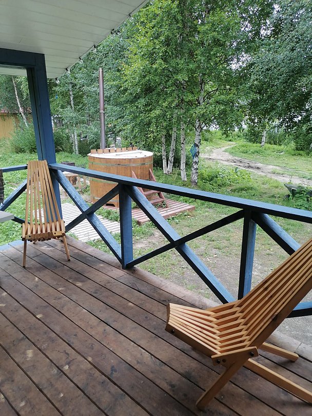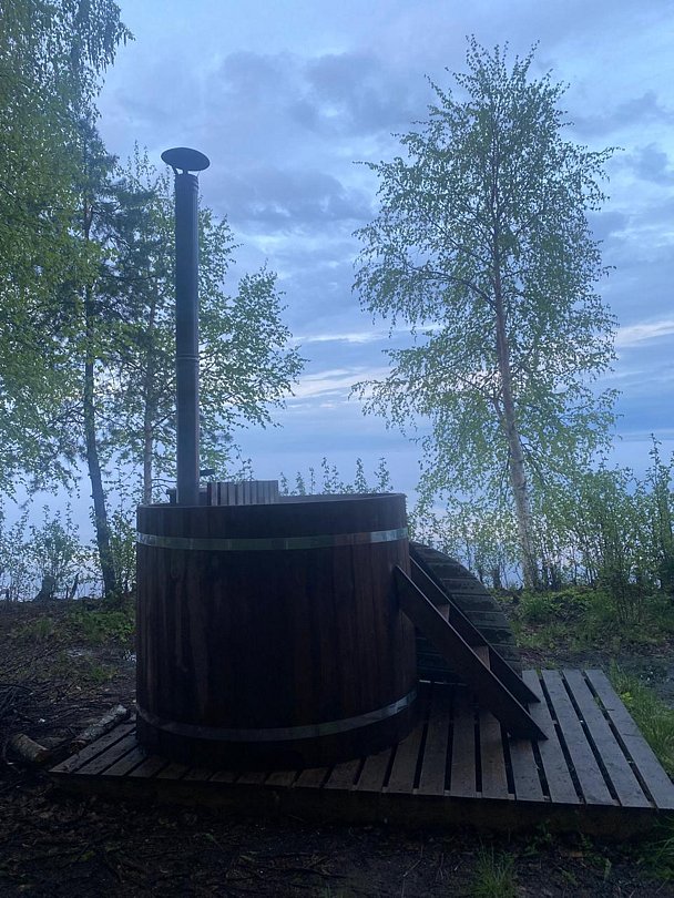 Рядом с домом расположена традиционная баня фурако — деревянная бочка с горячей водой,не входит в стоимость проживания, где можно погрузиться в релаксацию, слушая плеск воды и пение птиц. Неподалёку обустроена мангальная зона с каменным очагом, где можно готовить ароматные блюда на открытом огне, наслаждаясь дымком и вкусной едой в кругу близких. А чуть дальше, у самой кромки воды, притаился небольшой пирс, с которого так приятно рыбачить или просто сидеть, свесив ноги, наблюдая за закатом. Это место — идеальный уголок для тех, кто ищет уединения и гармонии с природой.
