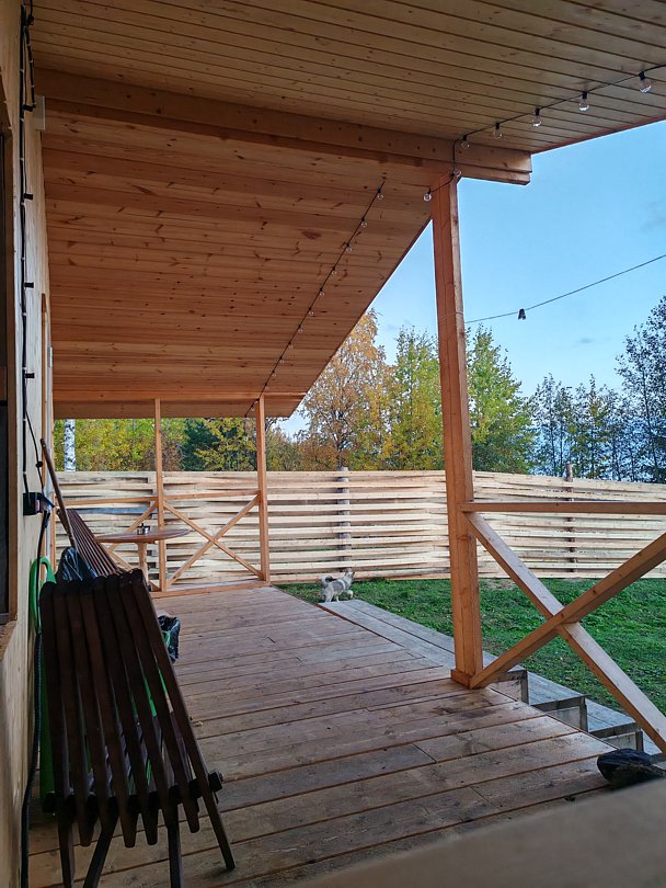 Но настоящая душа этого дома — терраса. Просторная и уютная, она становится продолжением жилого пространства, где можно наслаждаться свежим воздухом и красотой озера. Здесь же, в шаге от террасы, расположен банный чан, в котором так приятно расслабиться после долгого дня, слушая шелест волн и наблюдая за звездным небом. Рядом — мангальная зона, где можно готовить ароматные блюда на огне, наслаждаясь общением с близкими под открытым небом.