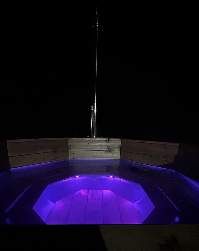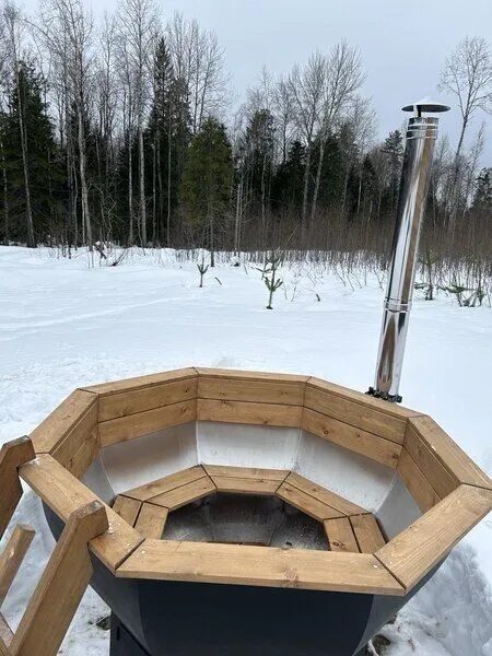 Отличное решение для романтического досуга или, просто, хорошо провести время с друзьями. Отопление на дровах. Рекомендуемая температура воды 40 градусов. Время на подготовку чана – минимум три часа.