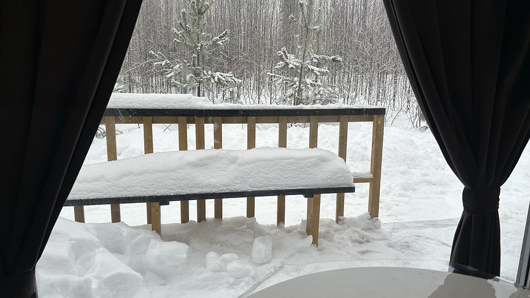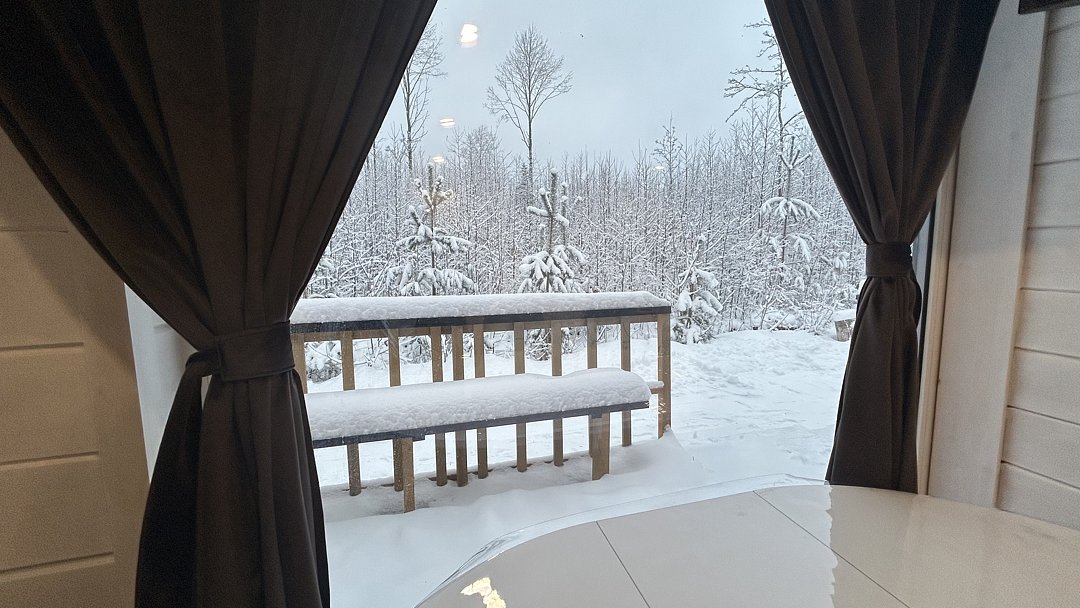 Тёплый дом с панорамными окнами. Просыпайтесь, завтракайте, обедайте и ужинайте с прекрасным видом на лес.