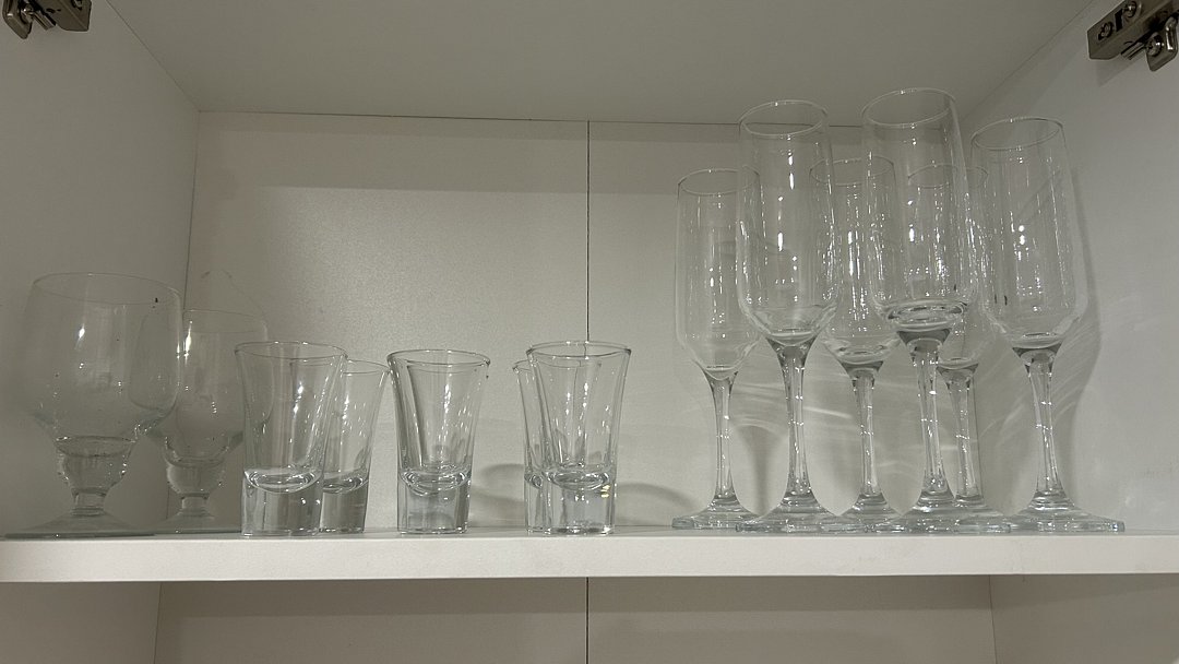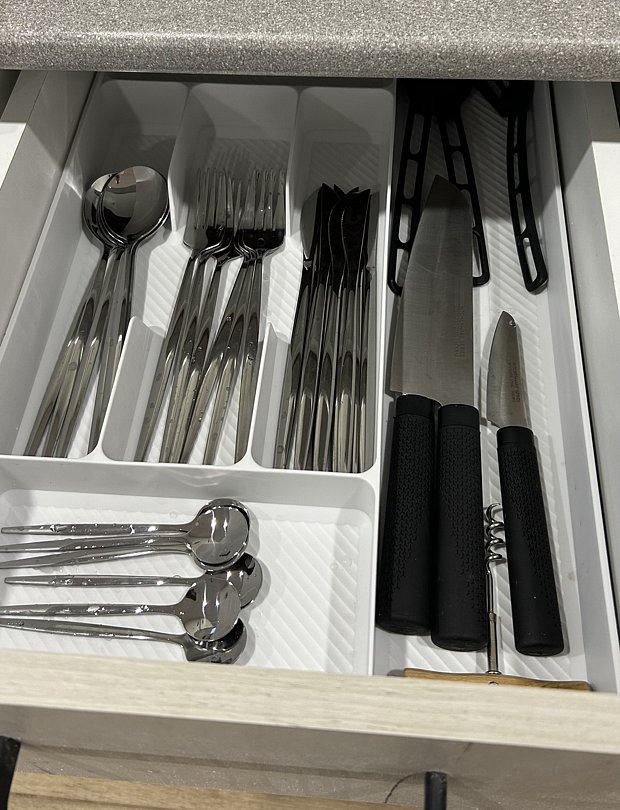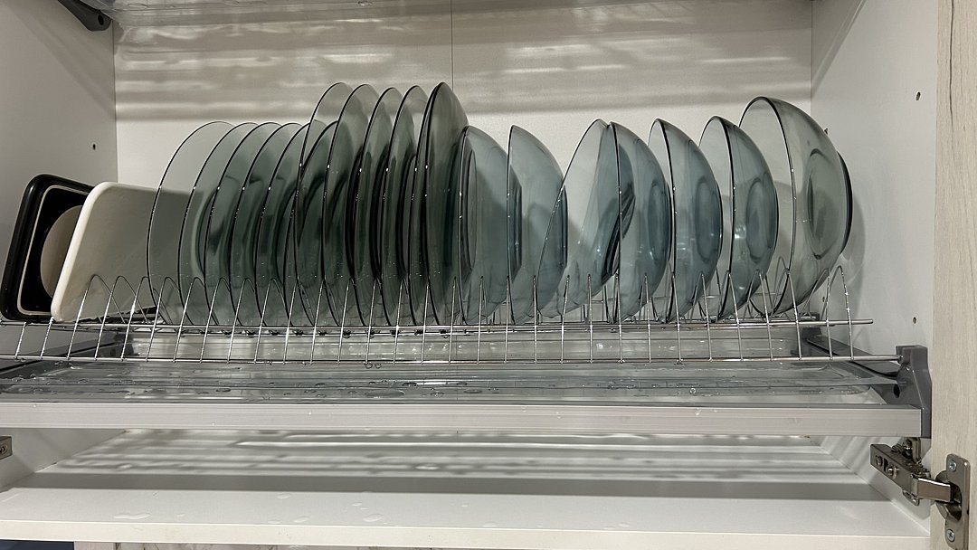 Всё необходимое для готовки и сервировки уже ждёт вас: посуда, столовые приборы и кухонные мелочи.