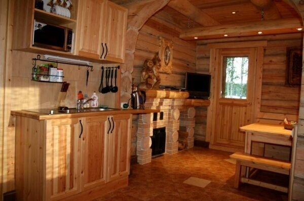 В доме есть электрическое отопление, но нет ничего прекраснее, чем запах дров и треск камина холодными зимними вечерами. К услугам отдыхающих все удобства, необходимая бытовая техника, микроволновая печь, телевизор, а также полы с подогревом и сауна на дровах. Вся мебель выполнена из экологически чистого материала — сосны.