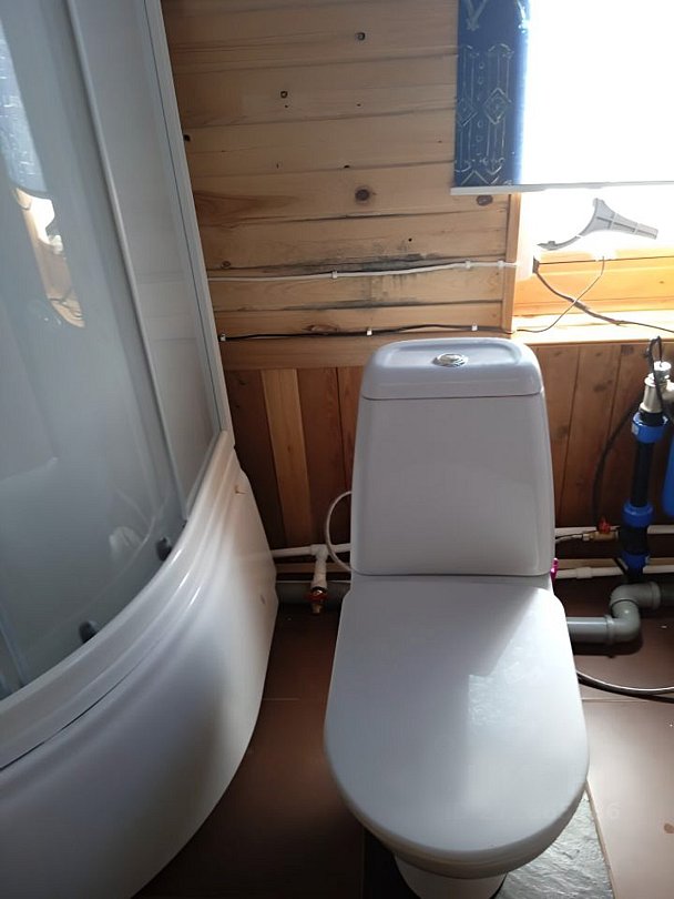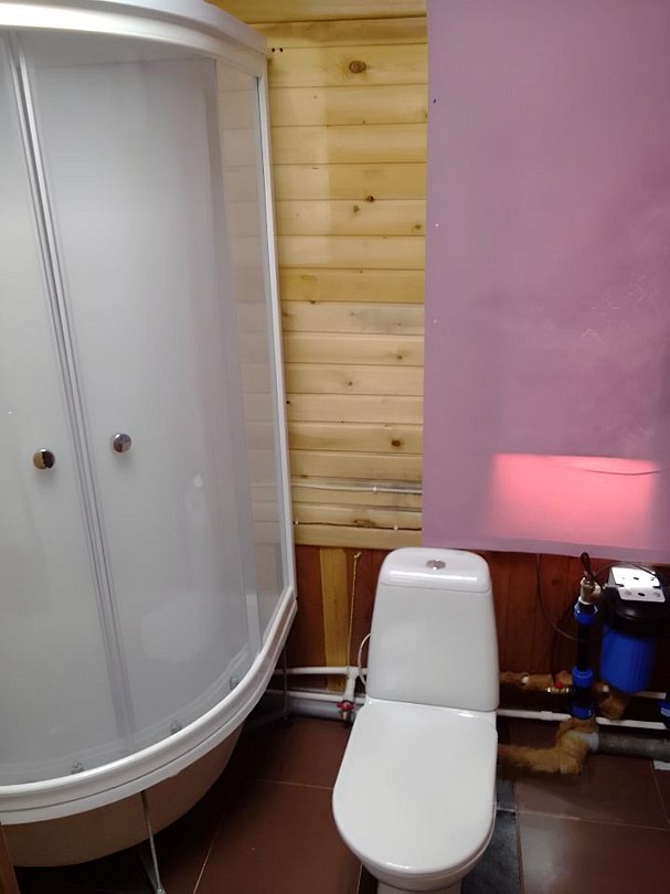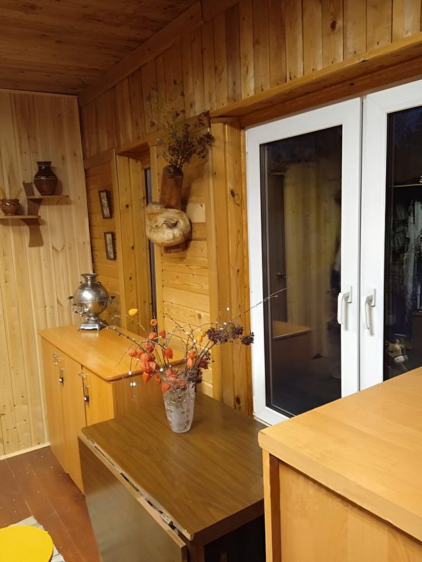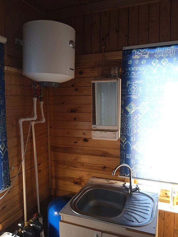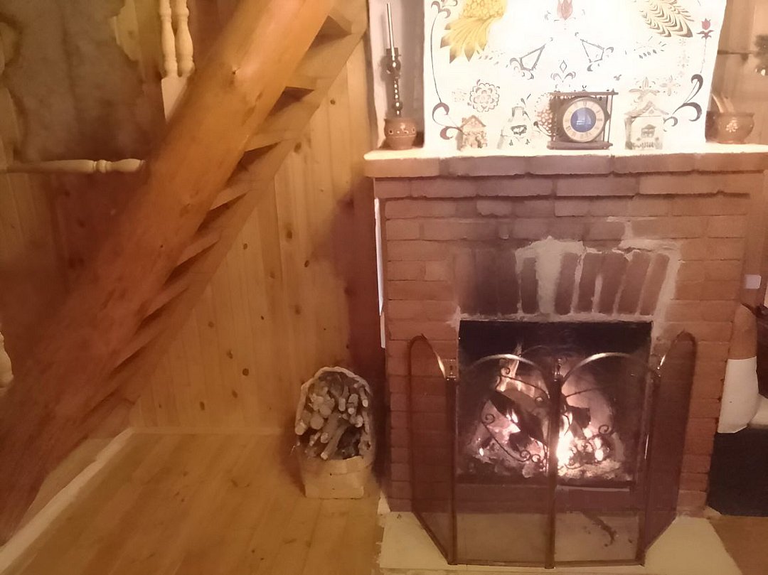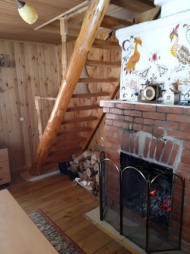 В доме присутствуют: три спальни, холл, терраса, печь и камин. Кухня (электроплита, микроволновая печь, пароварка, чайник, холодильник, телевизор (спутник), вся необходимая посуда). Туалет и душевая кабина, горячее водоснабжение.