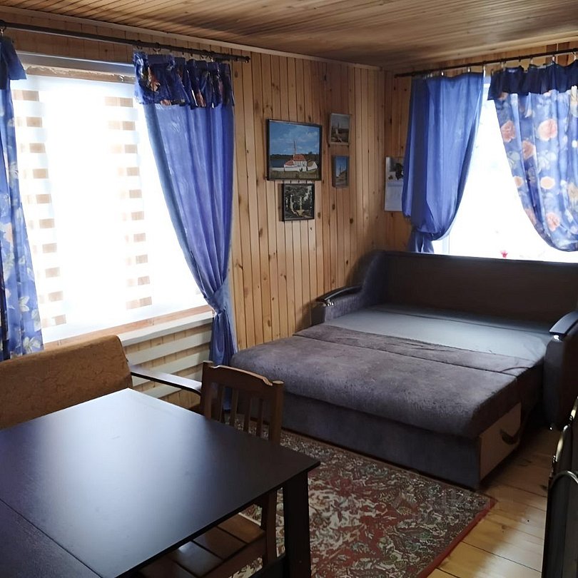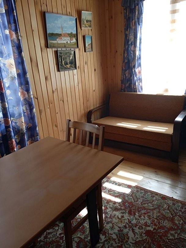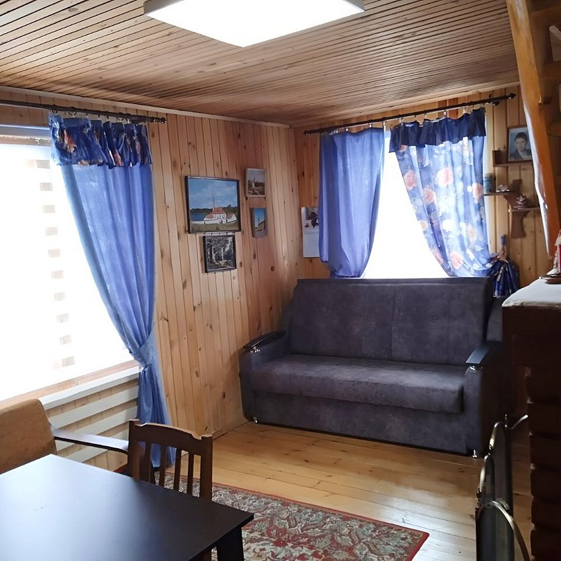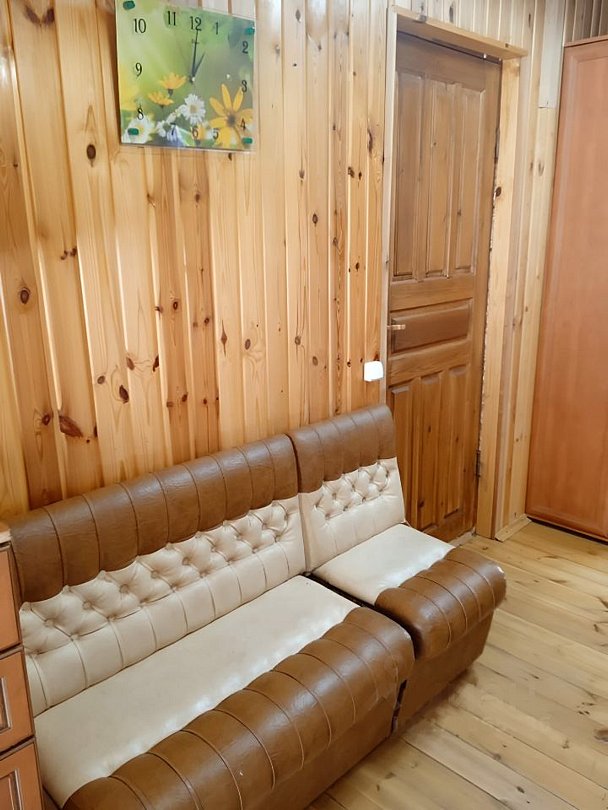 Семейный уют и теплота, комфортное размещение до шести человек в 2-х этажном доме из экологически чистых материалов (дерево (вагонка и бревно)) и всеми коммуникациями.