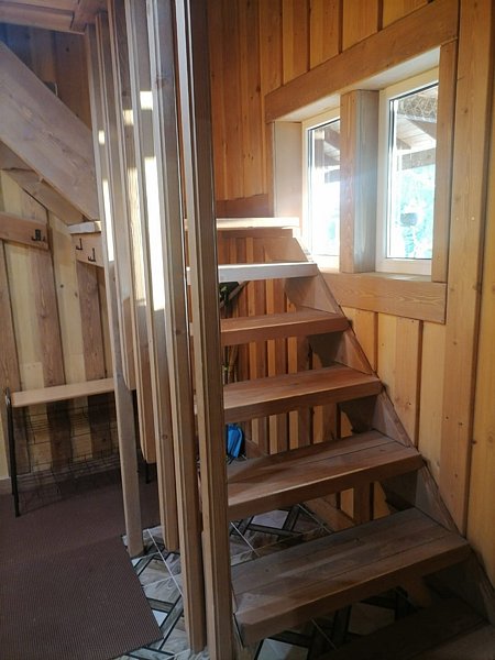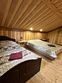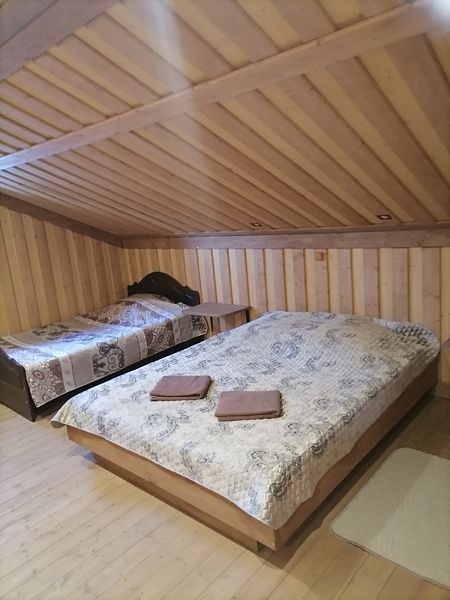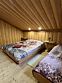 На первом этаже комната-студия с оборудованной кухонной зоной и двухместной тахтой. На втором этаже 3 спальни. В первой спальне 2-х местная кровать, во второй 2-х и полуторная, в третьей 2-х и односпальная кровати.