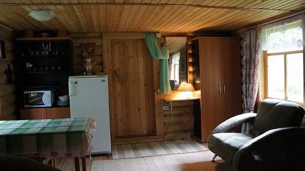 Однокомнатный дом оборудован холодильником, видеомагнитофоном с кассетами, газовой и электрической плитами. Спальные места: два двуспальных дивана, а также кресло-кровать.