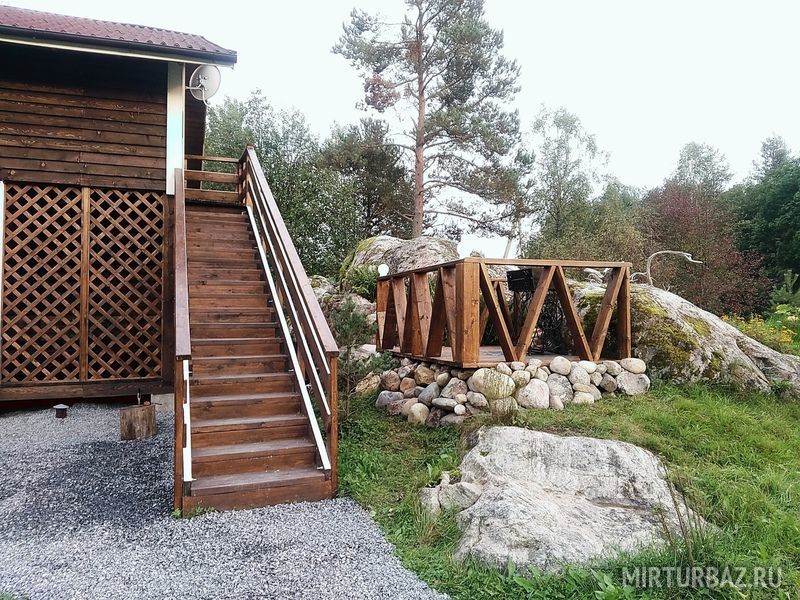 Коттеджи идеально подойдут для семейного или парного отдыха. Дома расположены в тихом месте, у подножия холма, в отдалении от посторонних глаз. Если Вы хотите отдохнуть в тишине, то это идеальный вариант для Вас. Гостевые домики расположены на 2-ой линии от озера, до заливов Ладожских шхер 150 метров.