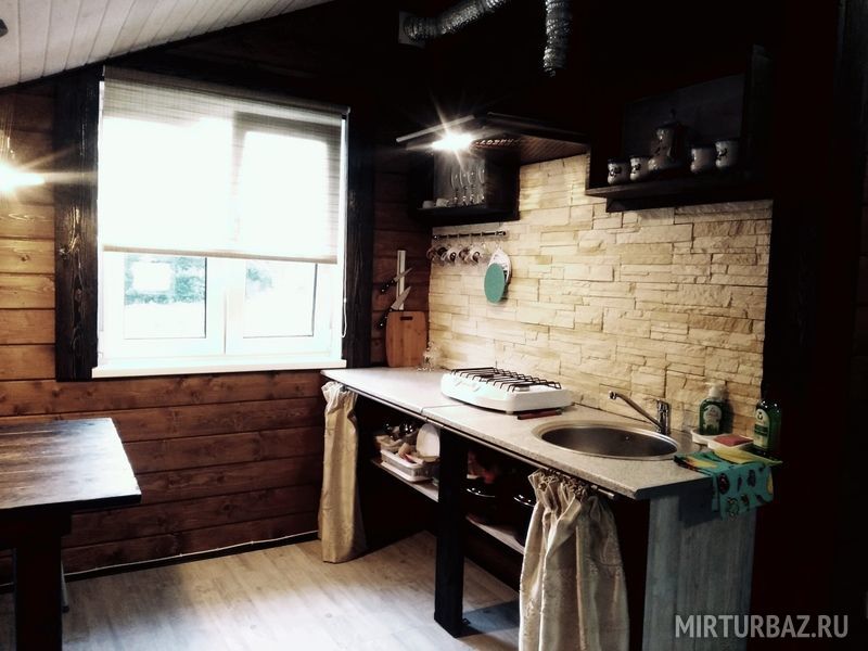 Баня оснащена всеми необходимыми удобствами. Для Вас постарались максимально сделать домики и баню уютными и практичными, чтобы гости чувствовали себя как дома. В большом доме отдельная спальня на 3 места + диван кровать в гостиной на 2-х человек.