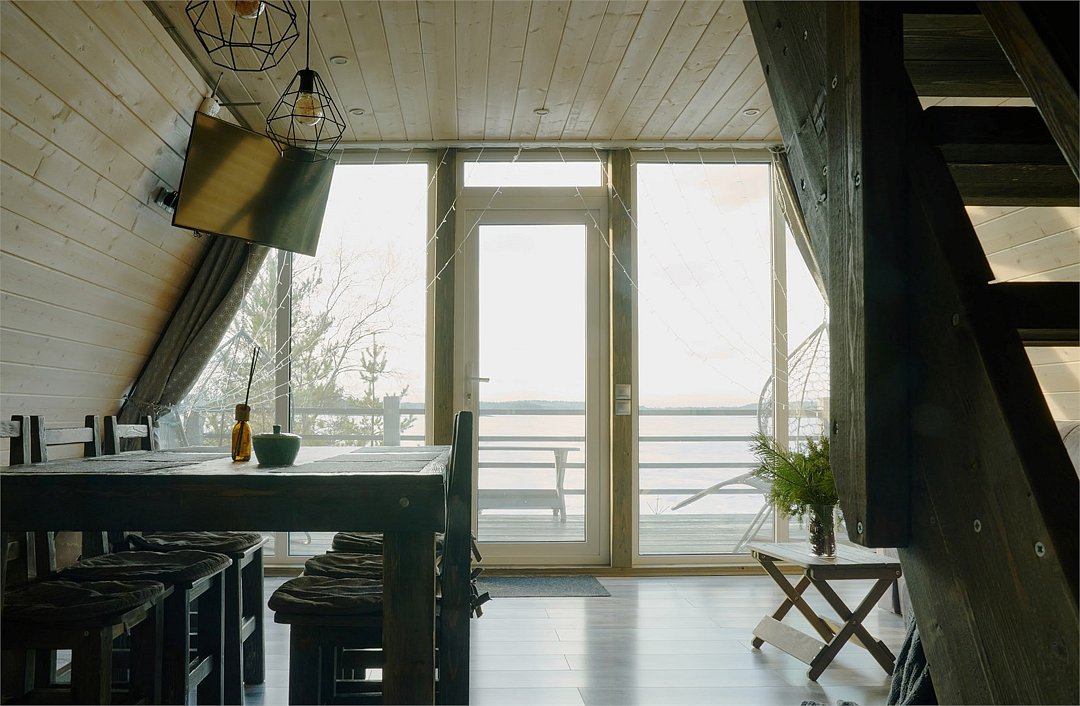 Уютный Дом A-FRAME на первой Линии Ладожского озера. С большой террасой, и потрясающим видом на залив Ладоги.Услуги и удобства