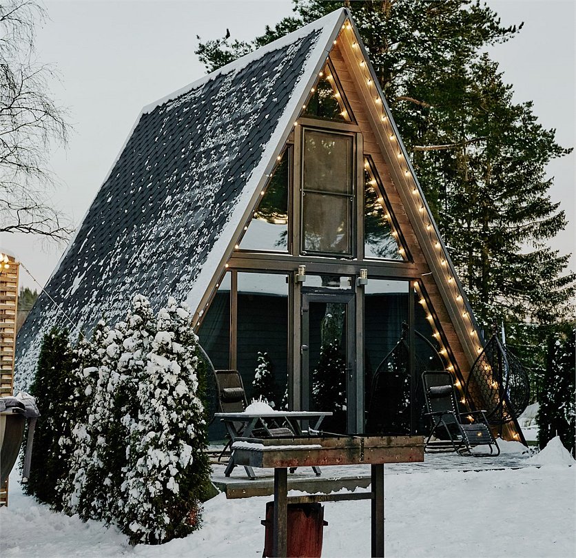 A-FRAME 2 с видом на озеро, большой террасой, гриль зоной и банным чаном