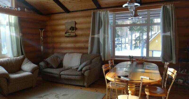 Бревенчатый дом построен в традиционном карельском стиле, характерном для этих краев. Северные дома неприметные снаружи, но зато внутри вы найдете все необходимое — вся бытовая техника, спутниковое телевидение, и даже стиральная машина. Конечно же есть и горячая вода, и отопление, а также сауна с отдельной комнатой отдыха.