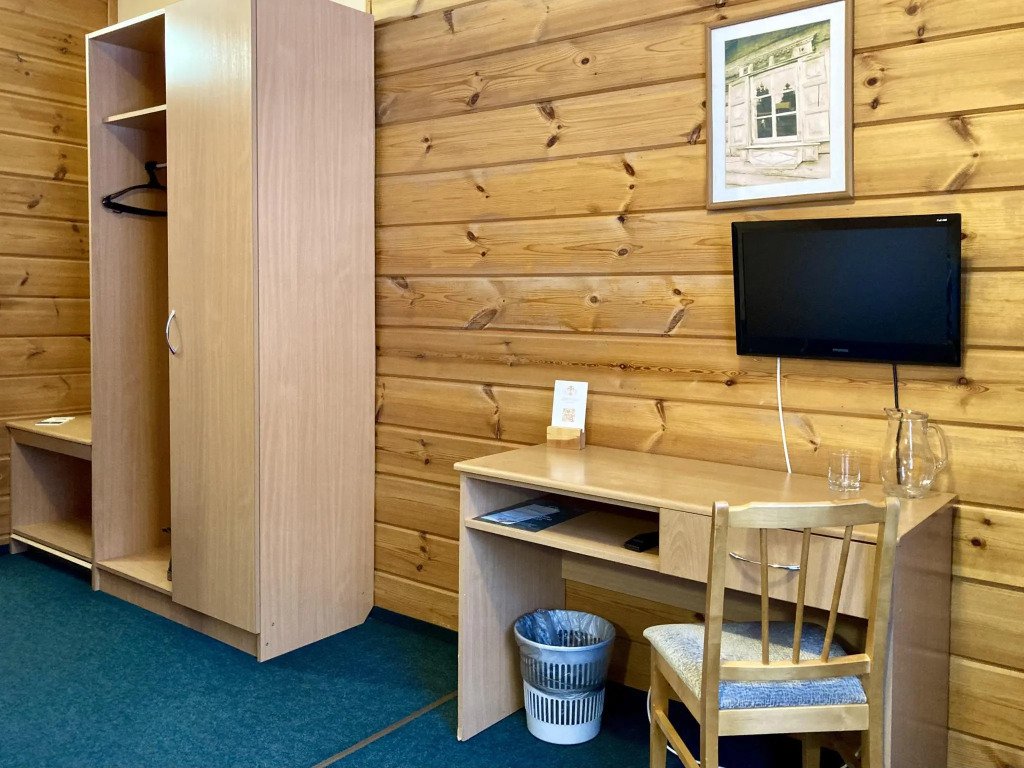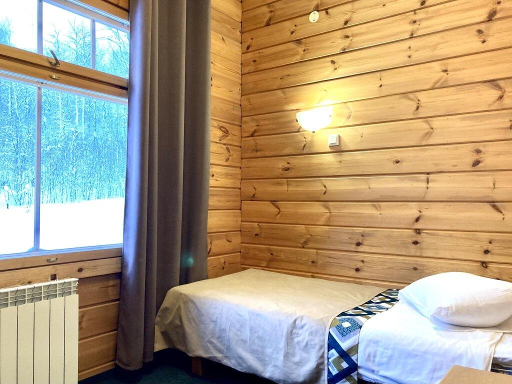 Стандартный одноместный номер площадью 18 м² с видом на карельский лес. Здание отеля построено с использованием экологически чистых деревянных конструкций по финской технологии. В номере имеется односпальная кровать, прикроватная тумбочка, шкаф для одежды, рабочее место с столом, телевизор и москитные сетки на окнах.