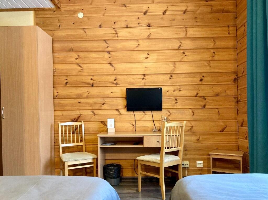 Стандартный трехместный номер (двухместный + одноместный) предназначен для комфортного размещения семей с детьми. Две смежные комнаты соединены между собой дверью. В каждой комнате есть свой санузел и выход в коридор. Здание отеля построено по финской технологии, с использованием экологически чистых деревянных конструкций.