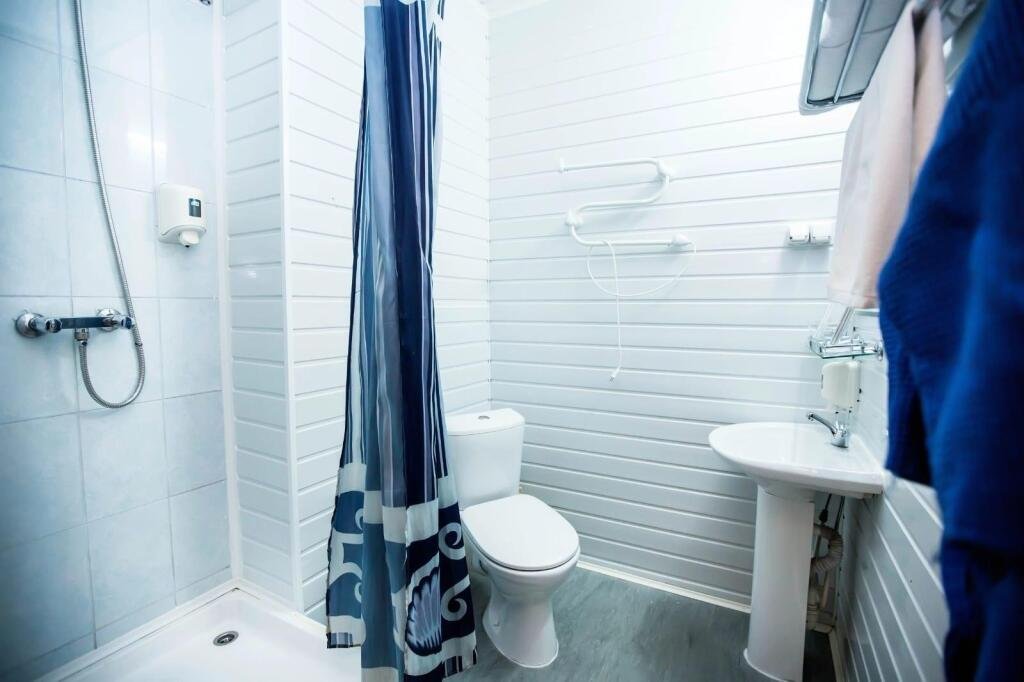 Ванная комната оборудована душевой и санузлом, а также предоставляется набор полотенец в количестве трех штук: для ног, для рук и лица, для головы и тела. При заезде гости получают одноразовый косметический набор.