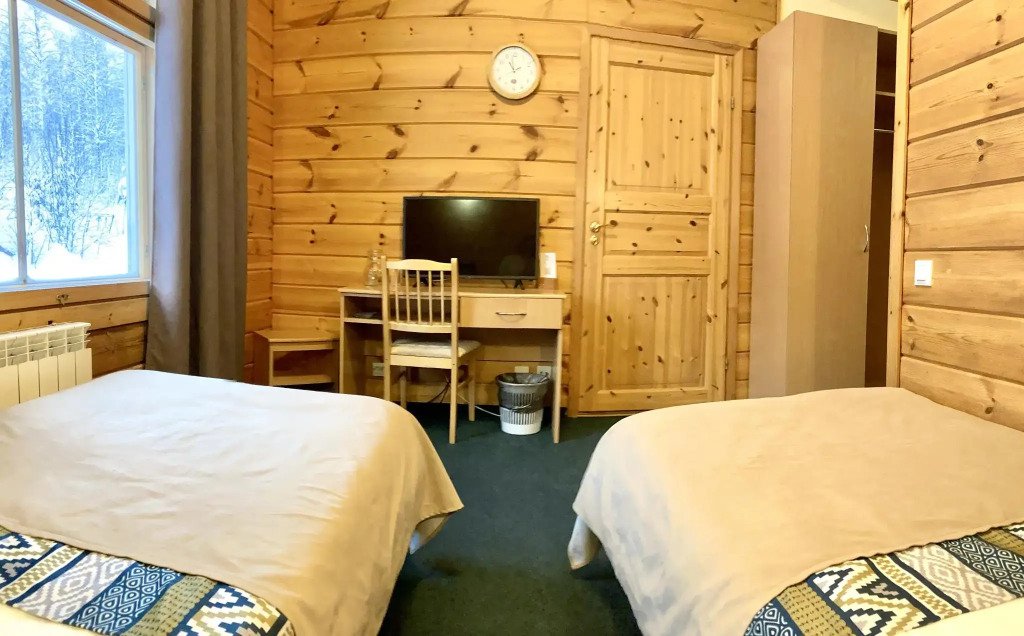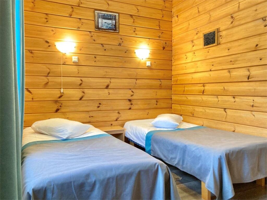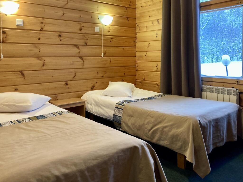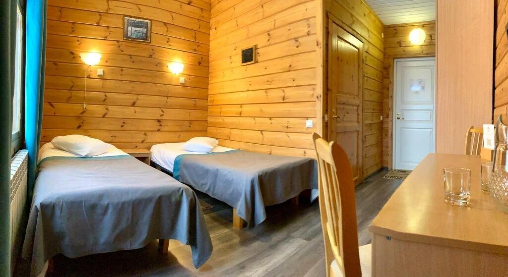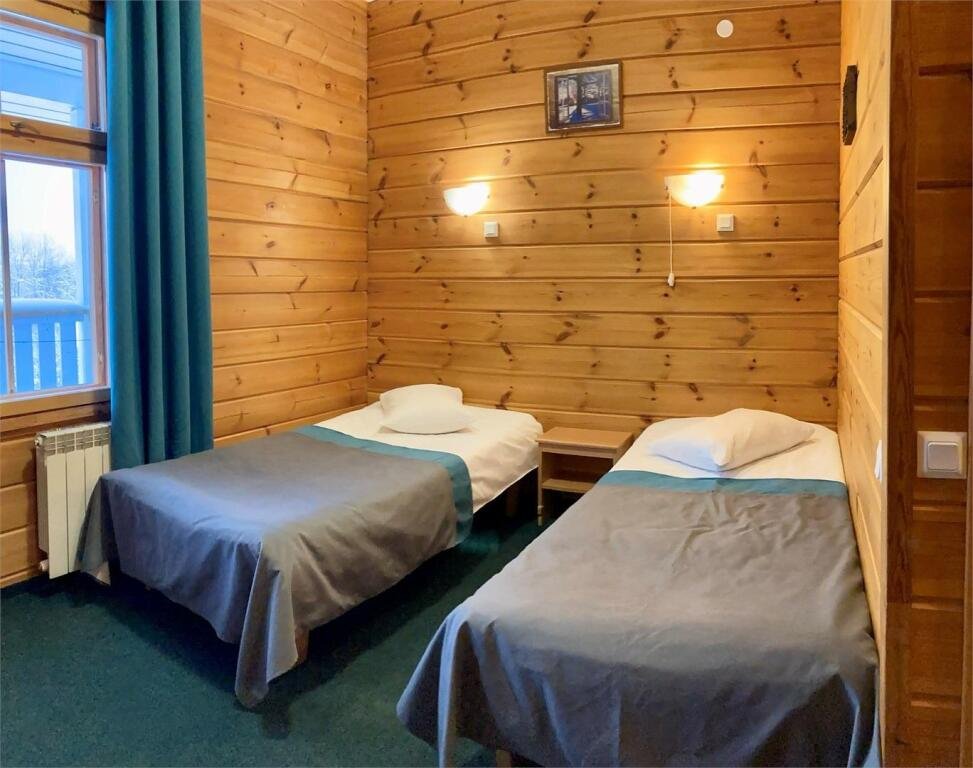 Стандартный двухместный номер площадью 18 м² с видом на карельский лес. Здание отеля построено по финской технологии, с использованием экологически чистых деревянных конструкций.