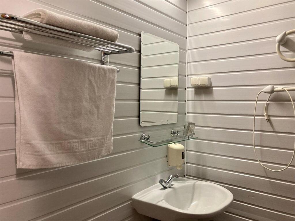 В номере: две односпальные кровати (есть возможность сдвинуть кровати), прикроватная тумбочка, шкаф для одежды, рабочее место (стол), телевизор, балкон. Ванная комната с душевой и сан.узел, набор полотенец 3 шт. для каждого гостя (для ног, для рук и лица, для головы и тела). При заезде предоставляется одноразовый косметический набор для каждого гостя.