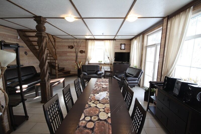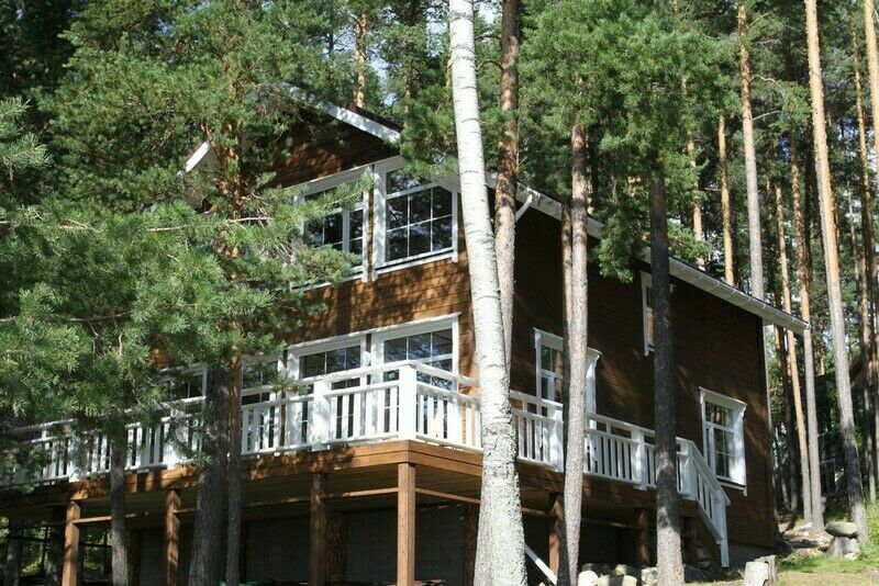 VIP коттедж, двухэтажный, благоустроенный 10-местный, с террасой на берегу озера Кончезеро. Благодаря панорамным окнам открывается великолепный вид на озеро Кончезеро и пляж.