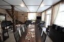 кухня-гостиная 20 м2, оборудованная плитой, микроволновой печью, электрическим чайником, холодильником, набором посуды и кухонной утварью, раковиной, диваном, большой стол, стулья, комод, зеркало, торшер, раскладной диван, ЖК-телевизор с DVD-проигрывателем.