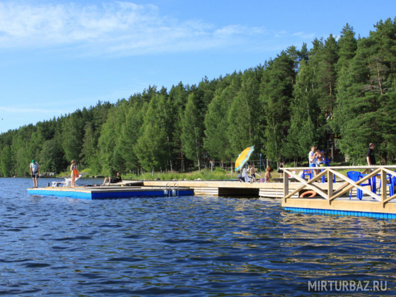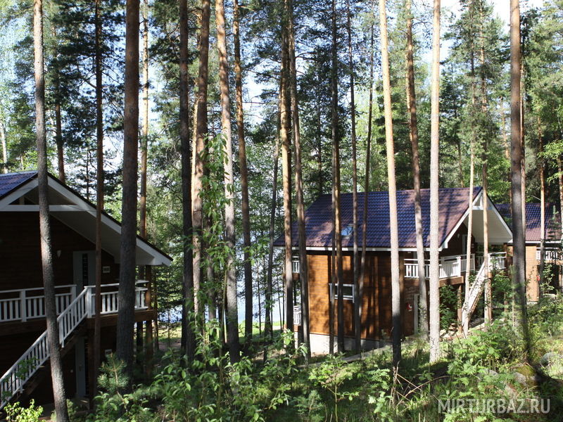 Номера расположены в двухэтажных коттеджах на берегу. На этаже 2 номера, каждый имеет отдельный выход на улицу. При желании можно объединить 2 номера на этаже. Все номера имеют панорамные окна с видом на озеро. Балконы всех номеров выходят на озеро и берег, окруженный соснами. У каждого коттеджа имеются стол для барбекю на 6-8 чел. и мангал.